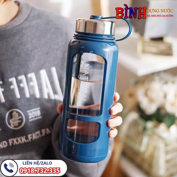 Bình thủy tinh của chúng tôi có thiết kế với lớp thủy tinh dày, tạo nên vẻ trong suốt không chỉ đẹp mắt mà còn không giữ mùi. Nắp bình được phủ một lớp thủy tinh bên ngoài, kèm theo dây quai sách tiện lợi. Bên trong nắp, có lớp rong cao su giúp ngăn nước tràn ra khi di chuyển.