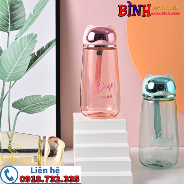Bình nhựa nắp bật cho bé 2 màu 2 dung tích