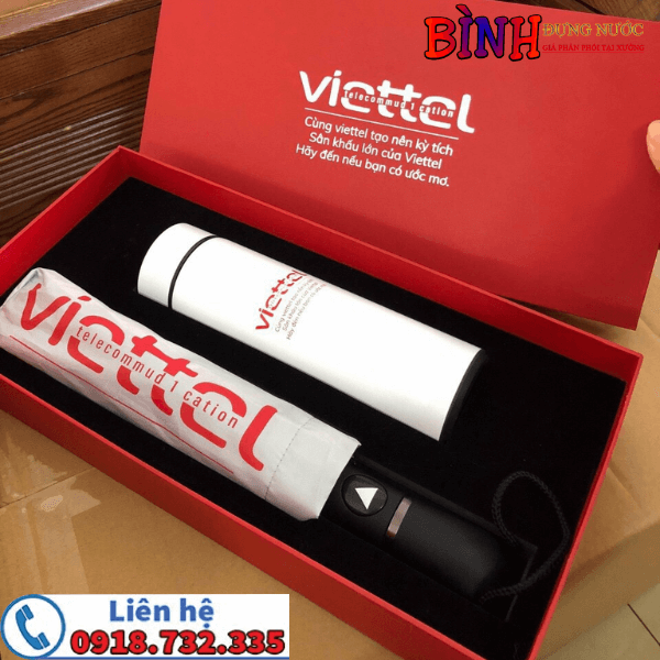 Bộ giftset bình giữ nhiệt, ô cầm tay in logo Viettel