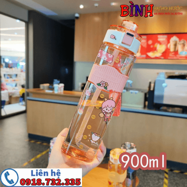 Bình nhựa nắp bật cho bé 2 màu 2 dung tích
